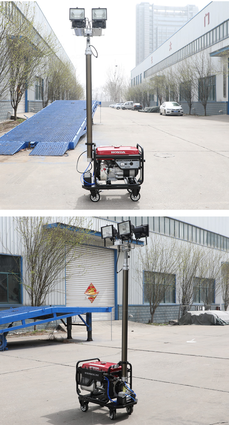 全方位升降工作燈適用于鐵路、電力、公安、消防、石油、石化等各種大型施工作業、事故搶修、搶險救災等工作現場對大面積高亮度照明的需要。 【性能特點】 ★發電機采用本田品