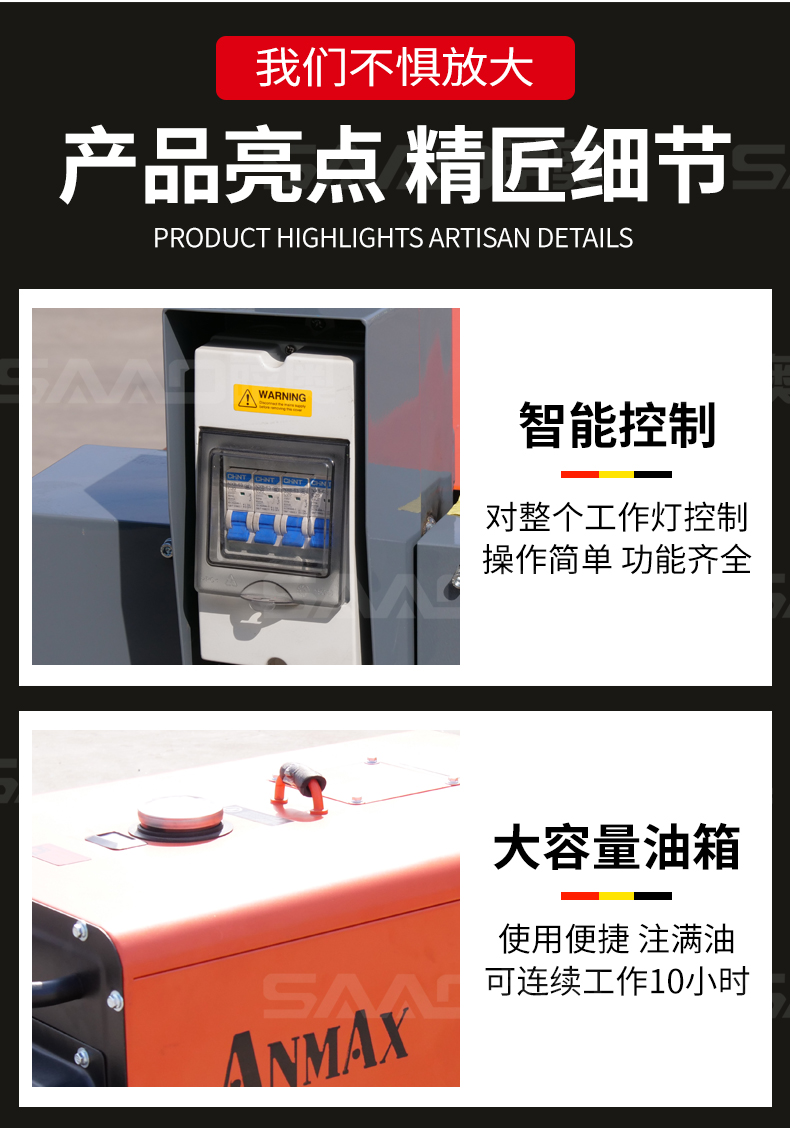 用于體育場(chǎng)館、機(jī)場(chǎng)、碼頭等大型公共場(chǎng)所,公路、鐵路、電力等緊急搶險(xiǎn)現(xiàn)場(chǎng),露天采礦現(xiàn)場(chǎng)等。