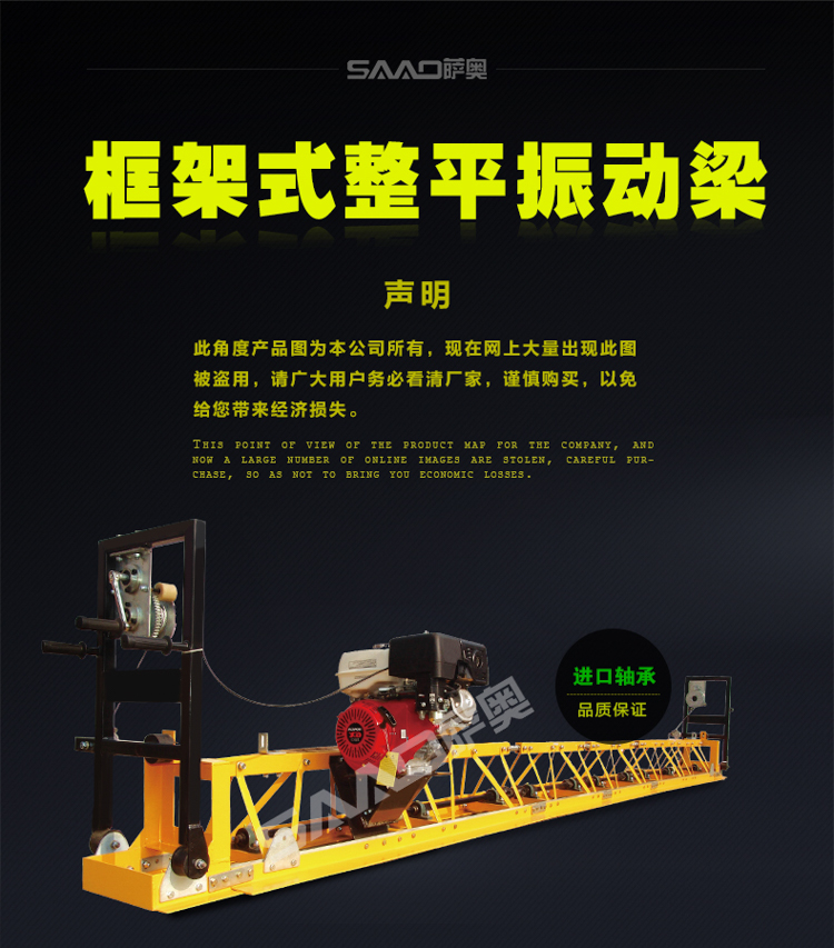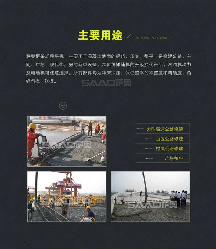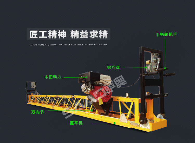 用于混凝土地面的提漿、壓實、整平,是修建公路、車間、廣場的新型設備。產品特點: ·裝備國際名牌HONDA汽油機,名牌品質保證,性能優越,啟動容易;