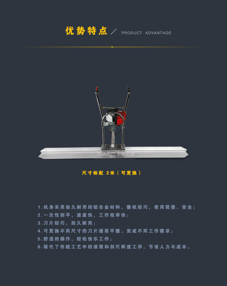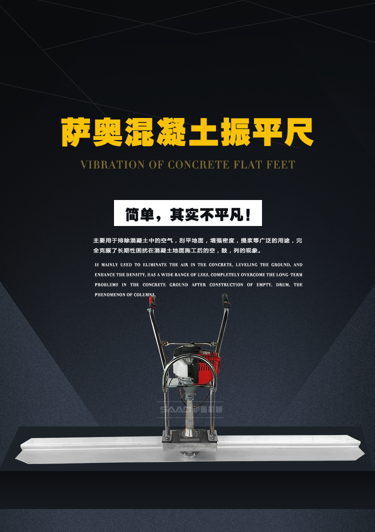 混凝土振搗尺主要用小面積的水泥路面地面的提漿整平產品特點: 名優汽油動力性能穩定 整體輕便 ,操作靈活
