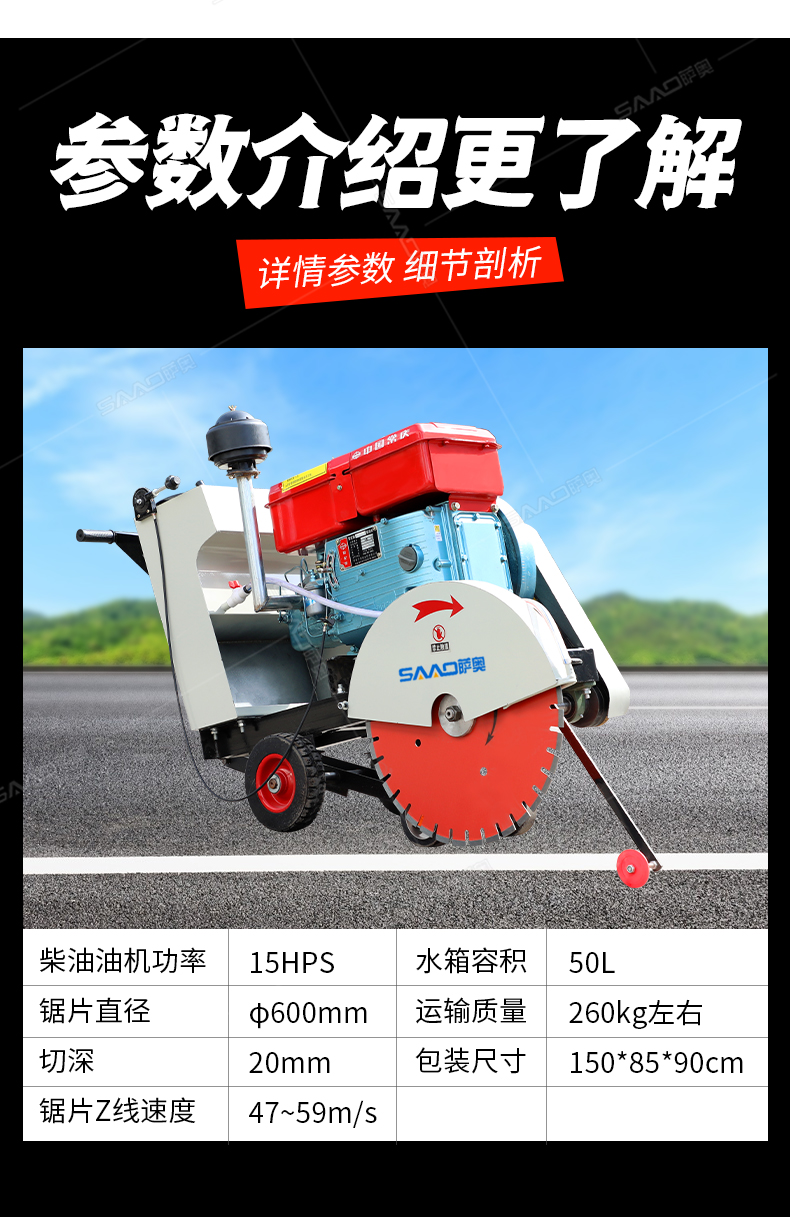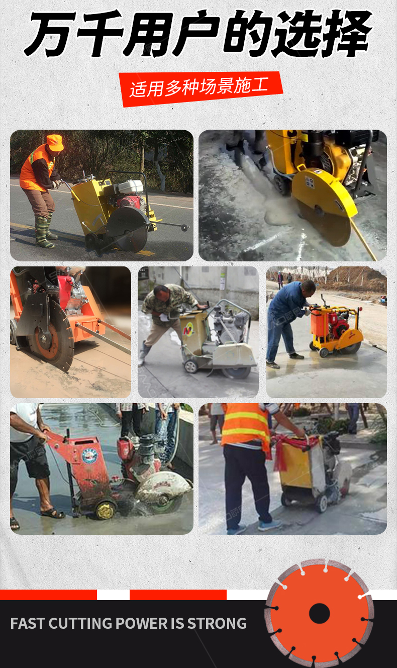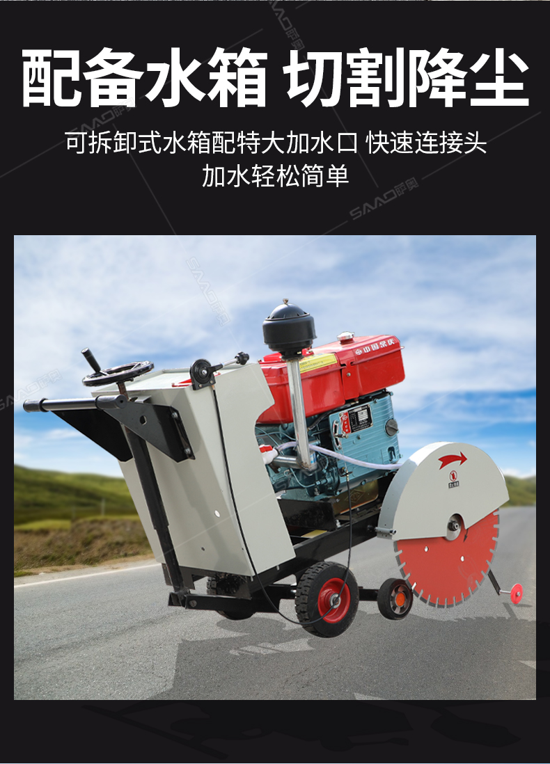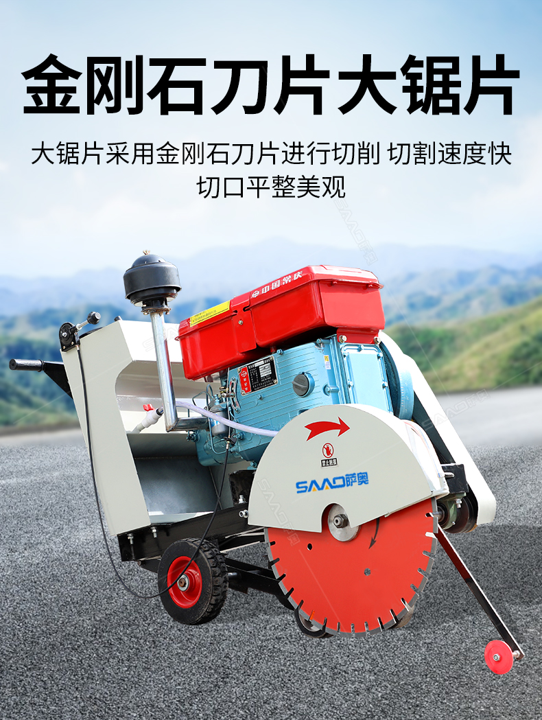 HQ600型水冷柴油馬路切割機也稱之為混凝土路面切縫機,廣泛用于市政、建筑、建材、公路、橋梁、自來水、熱力管線、機場建設等諸多行業的瀝青、水泥路面、混凝土制品等