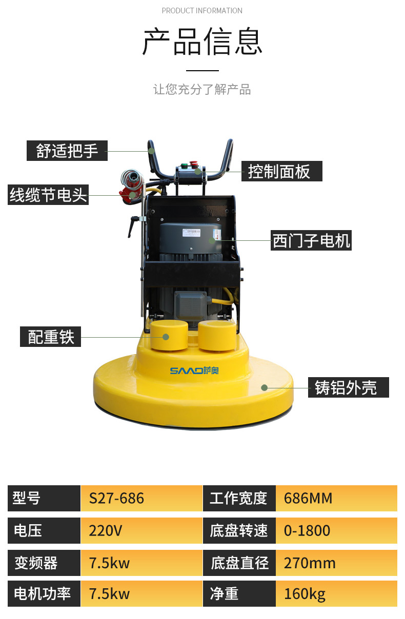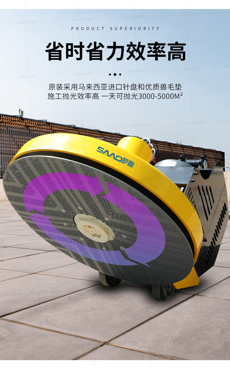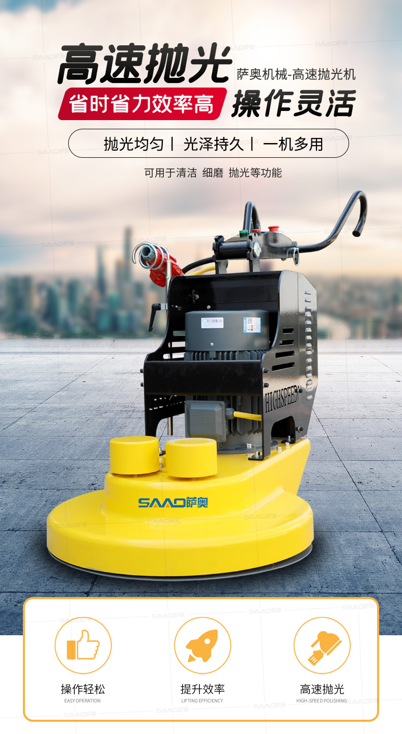 產品介紹: 高速拋光機是最具有競爭力的地坪機型系列。長期占據可觀的市場份額。其廣泛用于固化地面,石材地面的拋光,最終使得地面產生高潔,持久的光澤。 產品展示圖: 產品