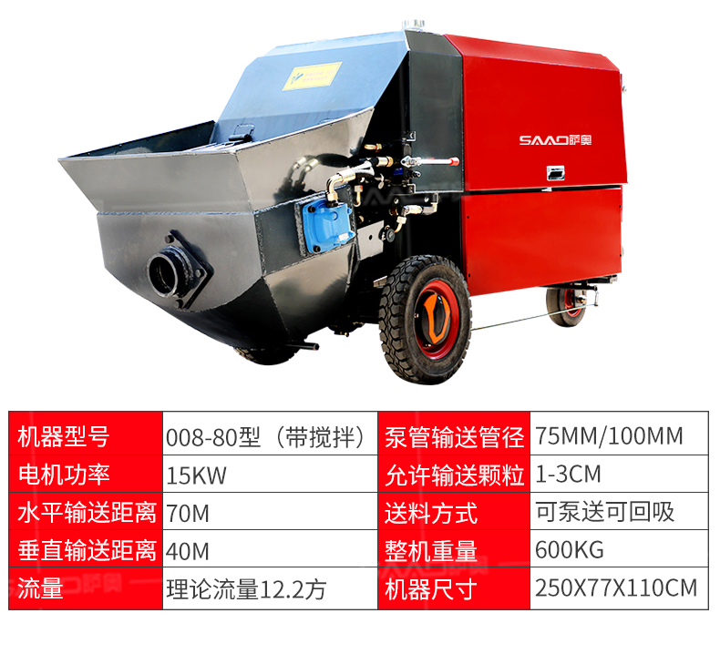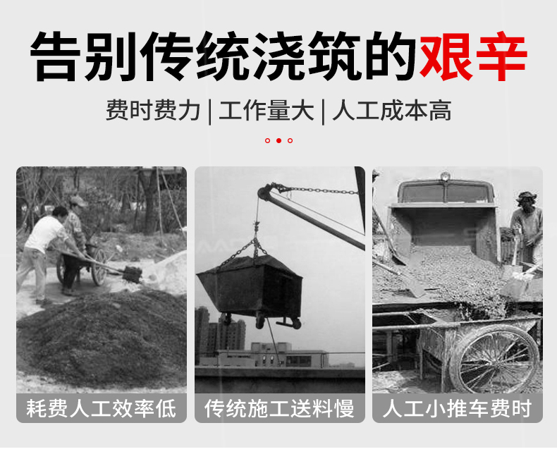 | 9 | 泵管輸送管徑 | 75mm/100mm | 野外施工、農(nóng)村自建房管徑配100mm |