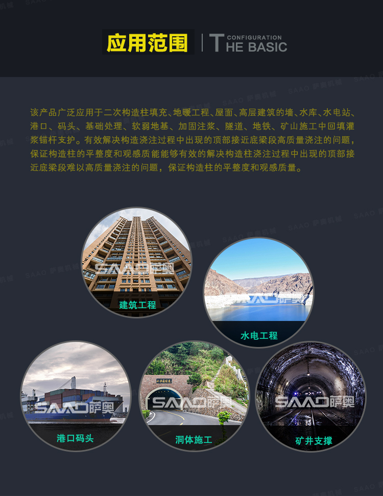 11KW臥式混凝土澆筑泵廣泛應用于二次構造柱填充、地暖工程、屋面、高層建筑的墻、水庫、水電站、港口、碼頭、基礎處理、軟弱地基、加固注漿、隧道、地鐵、礦山施工中回填灌漿