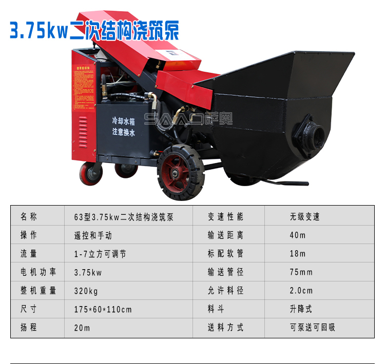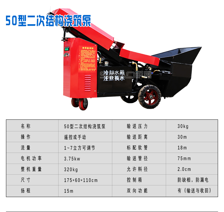 該設備適用于二次構造柱、高層樓房建設輸送、樓層地面澆筑。