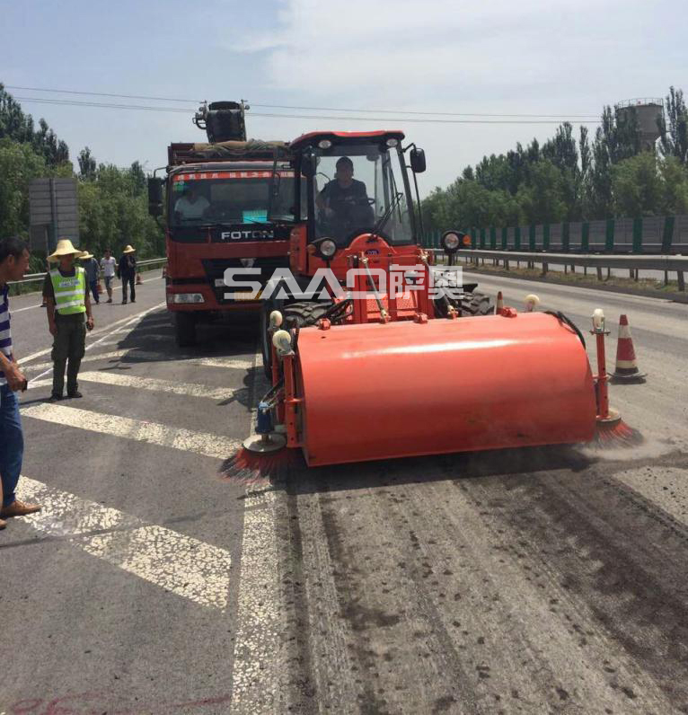 根據(jù)路面作業(yè)要求,在攤鋪瀝青作業(yè)前,要求水穩(wěn)層或銑刨路面保持清潔,不能有沙石等雜物。一般情況下每50公里10人需要5個工作日。而薩奧道路施工強力清掃機最多只需要1個工作日就可以清掃干凈,大大提高了安全性和效率。