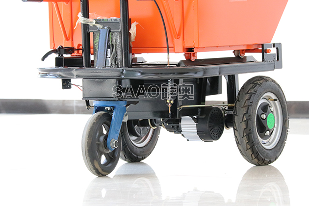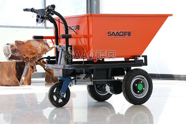 新型電動斗車相比于傳統的翻斗車改用了電力推動,前進、后退兩檔操作,告別了過去用人力推車,比較費力,人員勞動強度大等弊病。新型電動斗車由人員控制方向,手柄控制速度自