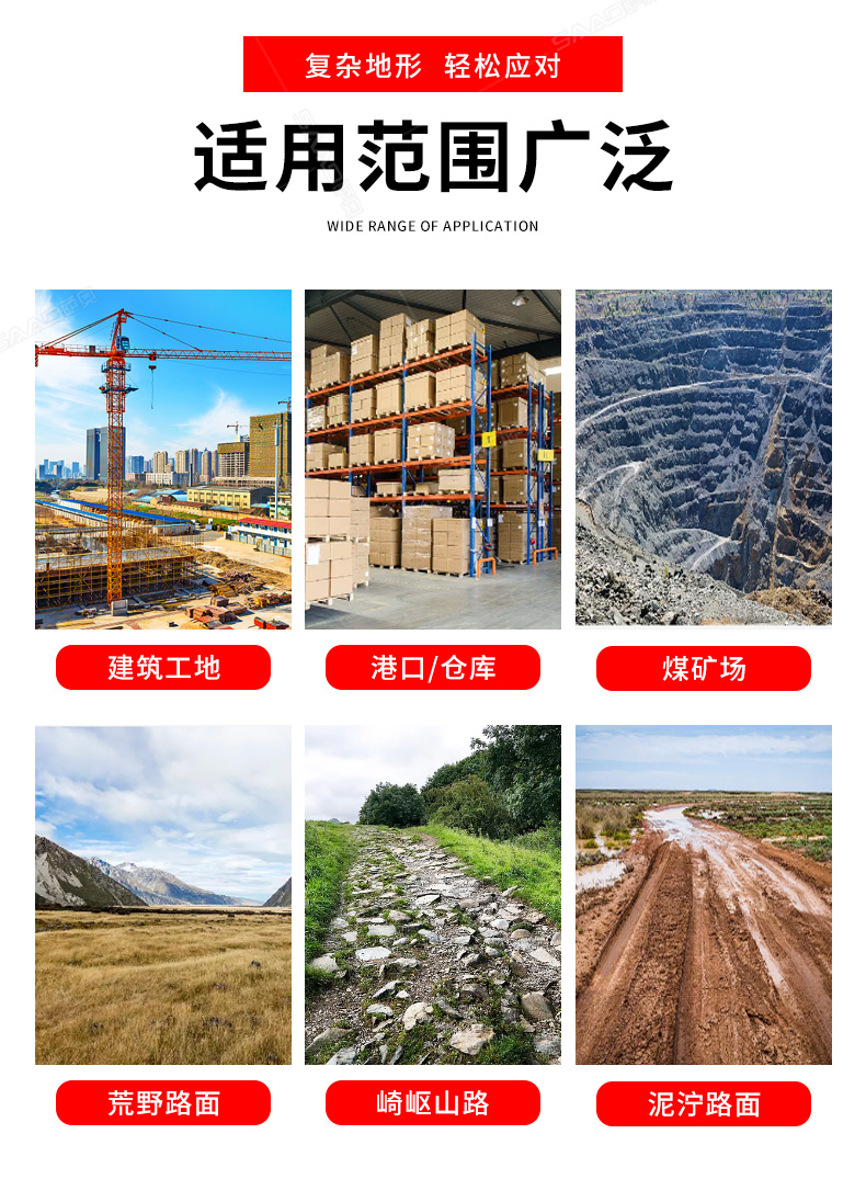 越野叉車適用于道路修筑、城市建設、環境衛生、石料場、中小型土木工程、車站、碼頭、貨場、倉庫等地方,主要用來轉運石料、設備、貨物、城市垃圾箱以及集裝物料等。