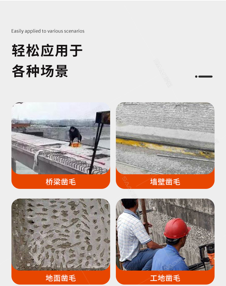 雙頭混凝土鑿毛機 2個頭鑿毛機 手持式雙頭鑿毛機 手持式雙頭鑿毛機主要用于 混凝土剔鑿,水泥表面的打點、粗糙、清除浮漿;兩次鋪裝前清除舊的混凝土。 手持式雙頭鑿毛機是利用