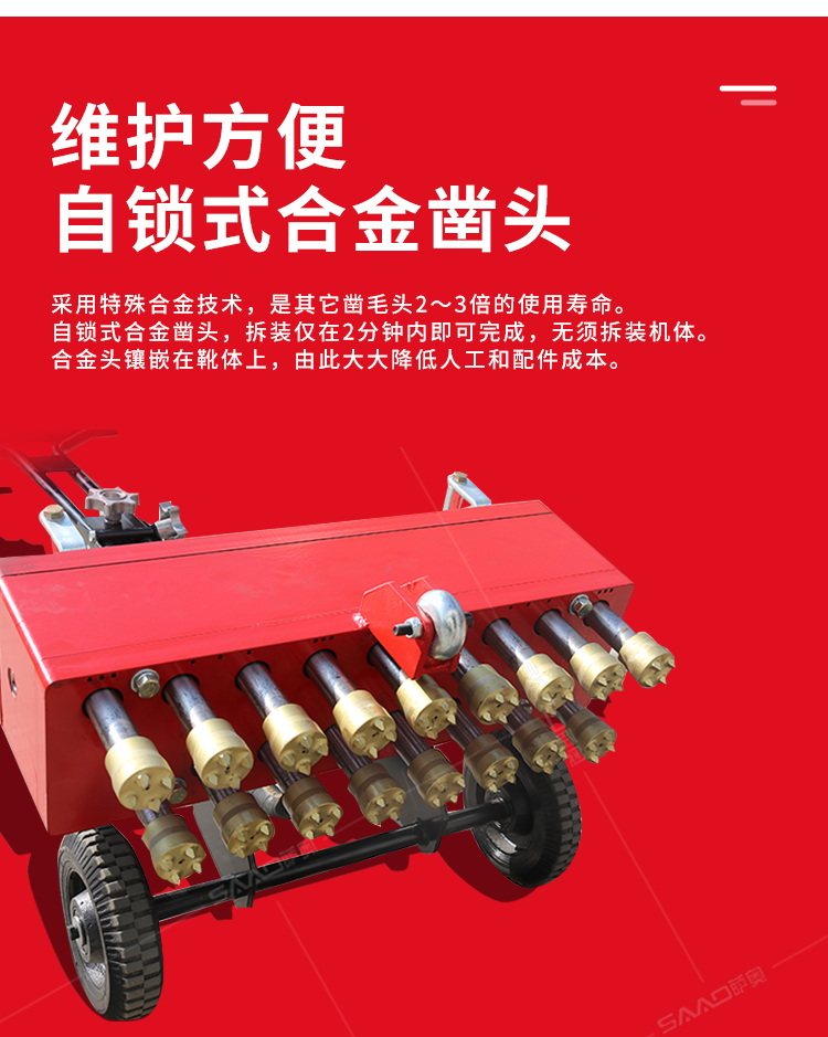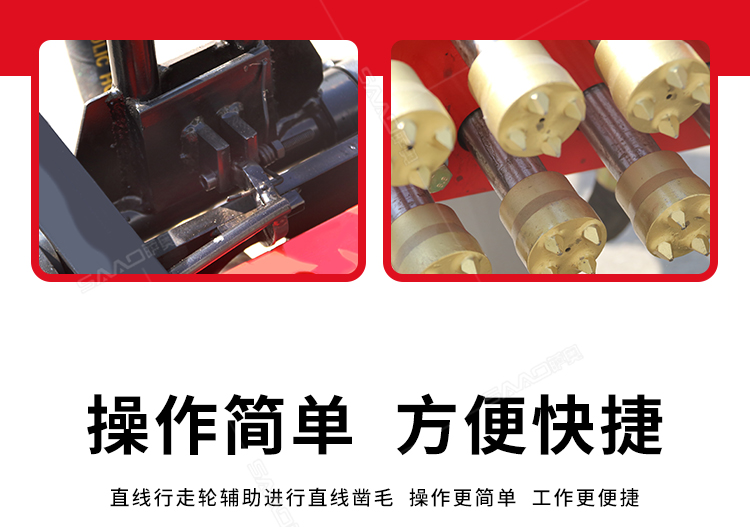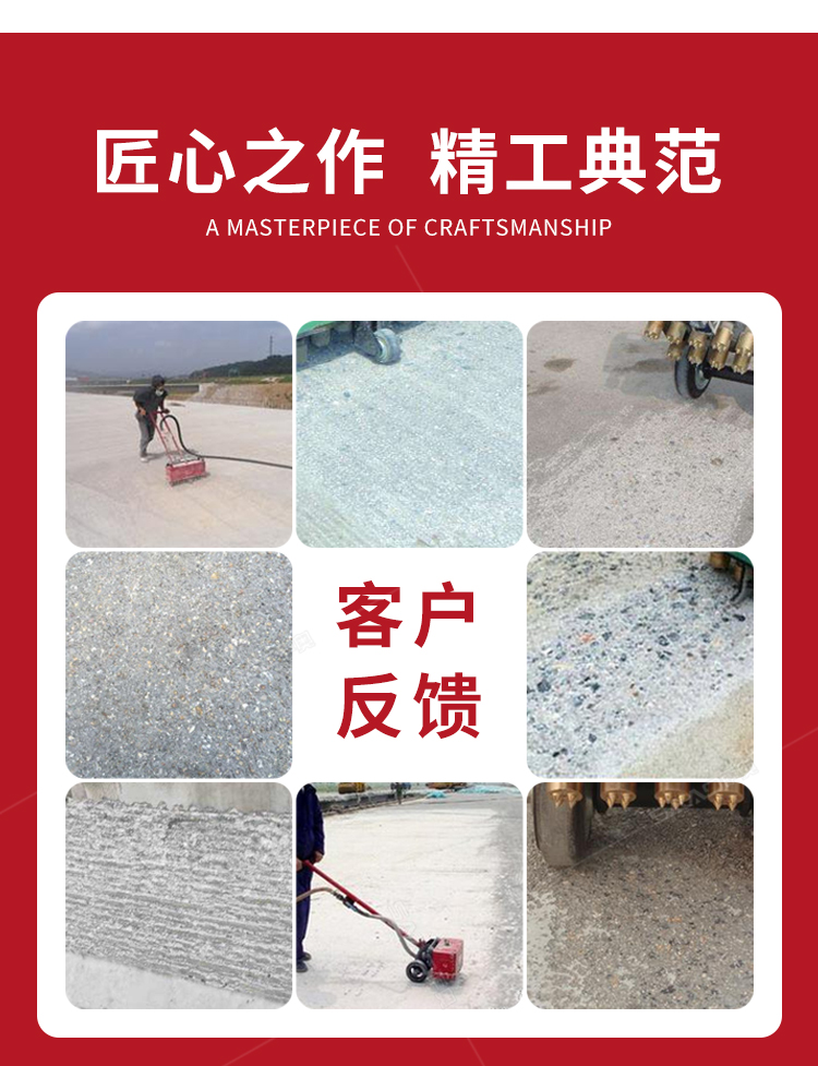 手推式地面鑿毛機,主要為高速公路、高速鐵路的橋面、機場、橋梁、停車場等各種混凝土地面新建鋪裝時對地面表層混凝土浮漿的去除,達到均勻粗糙而設計的。對各種陳舊地面做翻