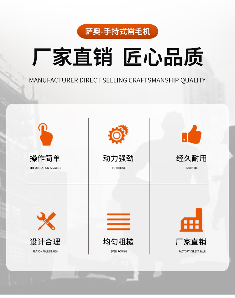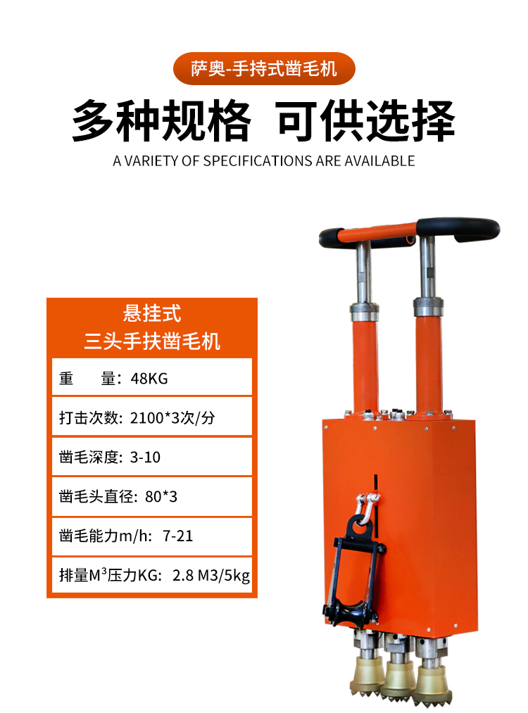 產品簡介: 手持式懸掛鑿毛機機身有吊環,鑿墻面的話吊起來使用,對平面、立面、弧形等多角度進行鑿毛作業,打擊力大、鑿深自如,應用領域非常廣泛,又省力還方便。 主要適用