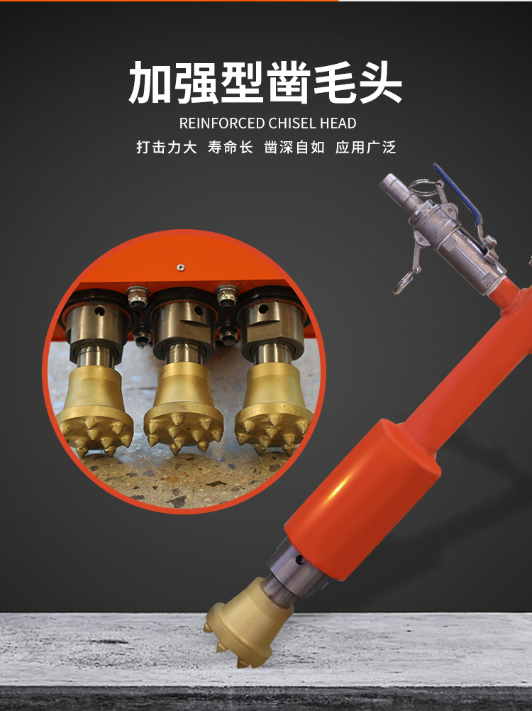 主要適用于水庫、大壩滲漏,險橋危橋、電廠、隧洞、高速公路、鐵路橋面以及箱梁混凝土等眾多領域;主要是對混凝土表面進行剔鑿,建筑物墻體、地面以及市政工程混凝土面層剔除、修補、翻新、加固等。