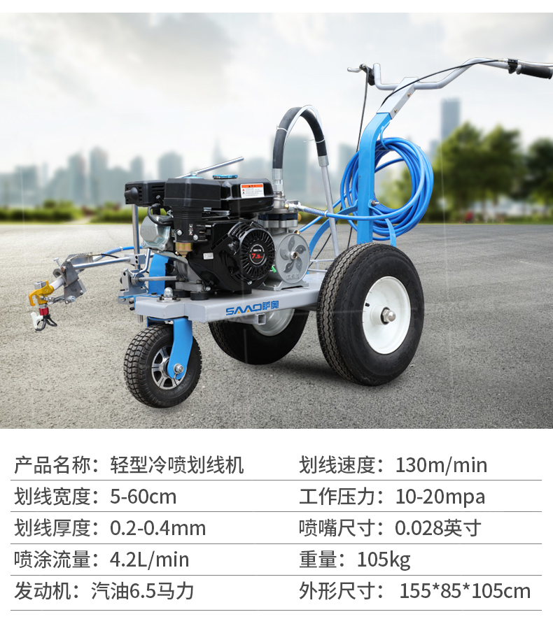 【產品介紹】 小區物業、地下車庫、學校、加油站、駕校場地等噴涂工作量不是特別大的客戶 【產品優勢】 持久續航,運行穩定,劃線筆直,無噪音。 真空氣輪:減震效果更為顯著平