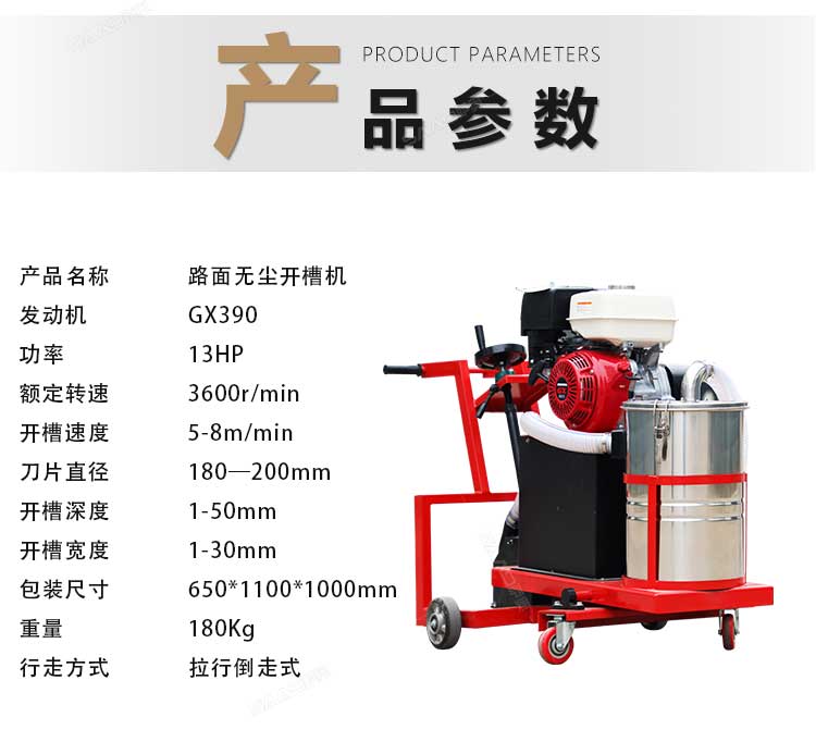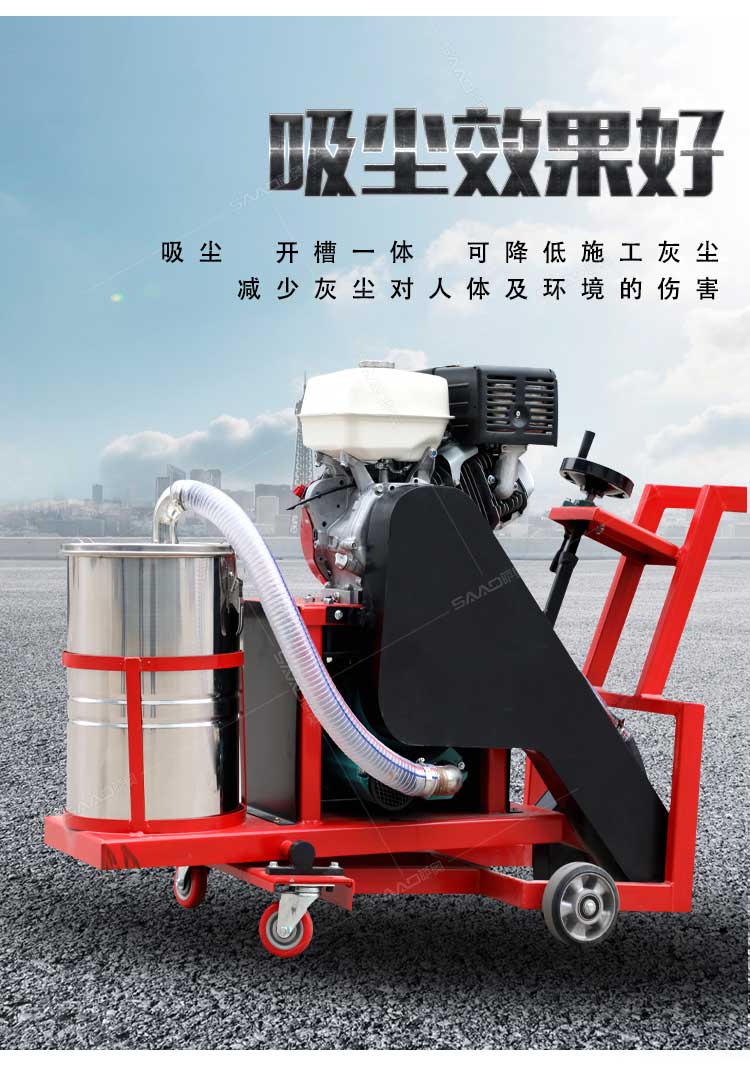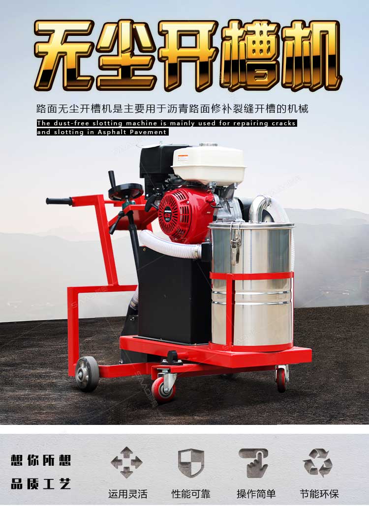 路面無塵開槽機是主要用于瀝青路面修補裂縫開槽的機械,其集吸塵、開槽為一體,環保性好,工作效果高,是路面開槽施工不錯的選擇。