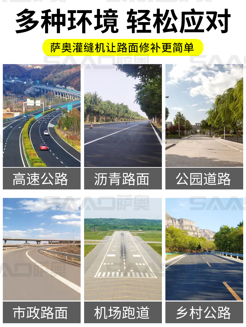 SGF-650系列路面灌縫機適用于瀝青路面或水泥路面裂縫密封灌縫 ,是大型路面裂縫養護工程量施工首選設備。
