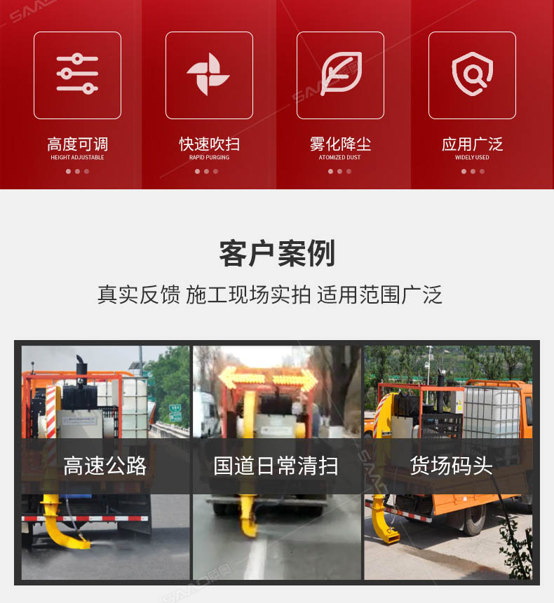 車載路面吹風(fēng)機針對目前高速公路路邊角清掃困難而生產(chǎn)的一款路面清掃設(shè)備,具有快速、高效、低能耗、低工作強度等優(yōu)點