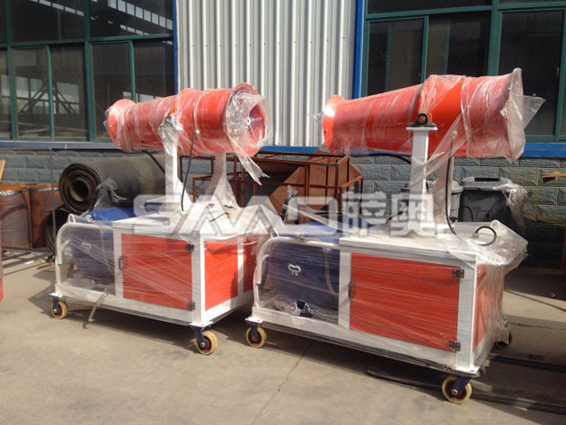 此次發(fā)貨的高壓霧炮,通過炮狀水箱向外噴射出細(xì)密的水霧,可將空氣中細(xì)小的顆粒粉塵有效吸附,進(jìn)而達(dá)到凈化空氣、降塵除霾的作用。環(huán)保部門對我公司研發(fā)生產(chǎn)霧炮的測試,“霧炮”可以將空氣中的PM10濃度降低15%左右。