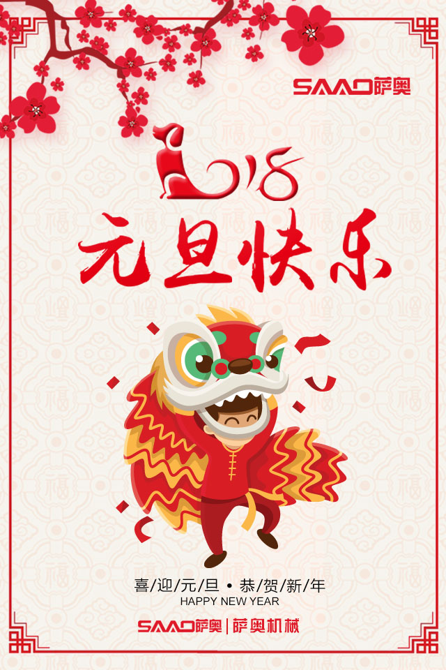 值此元旦來臨之際,再次衷心地感謝所有支持薩奧機械發(fā)展的各位領(lǐng)導(dǎo)、各界朋友的厚愛,感謝國內(nèi)外新老客戶對薩奧機械長期以來的信任,感謝薩奧家人們多年來的理解與支持!祝愿大家元旦快樂、工作順利、心想事成!