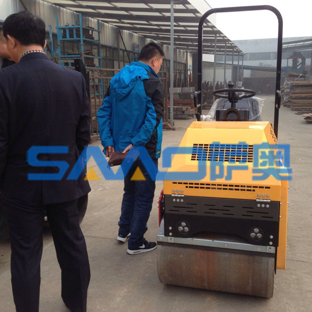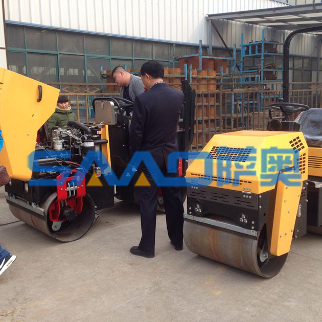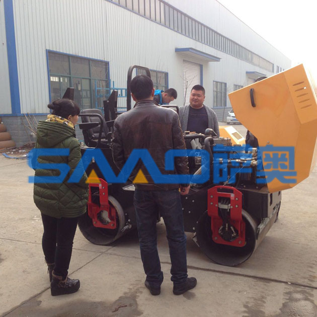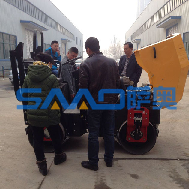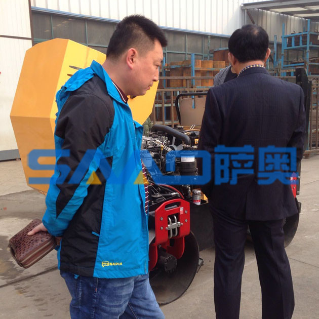 坐在駕駛座上的這位客戶,開動機器的發(fā)動機,認真的觀察壓路機的工作原理和基本的構(gòu)造。