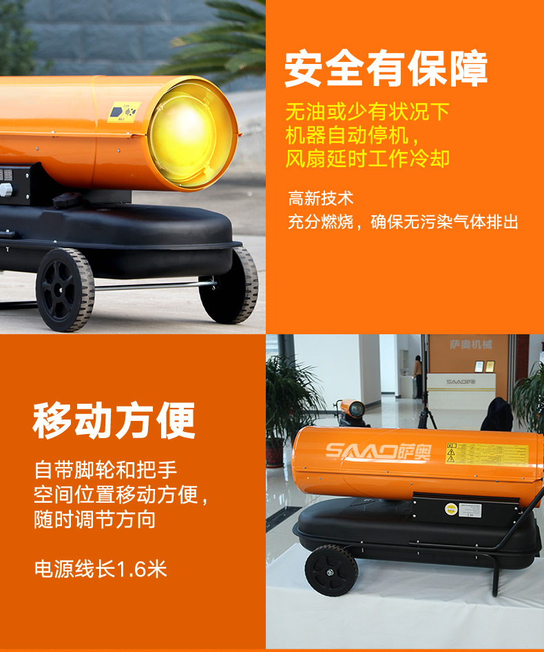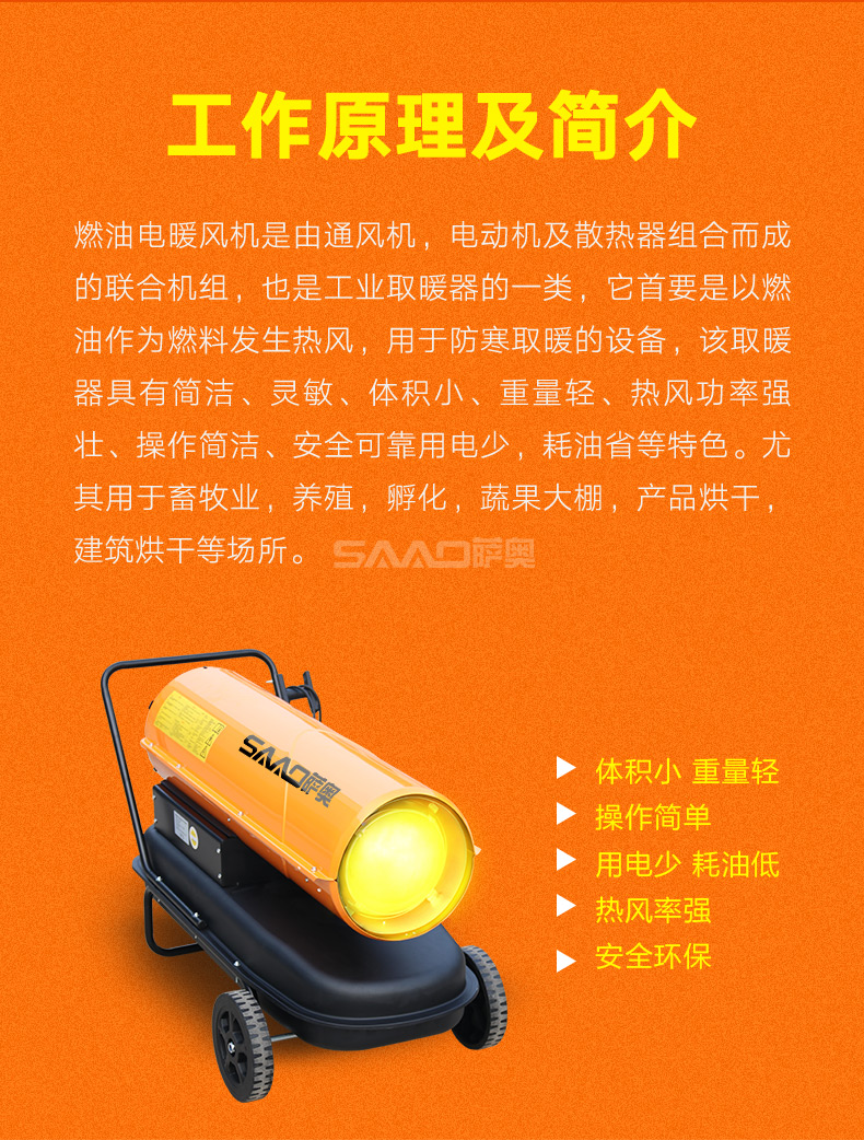 我廠專業生產溫室大棚暖風機,養殖場專用暖風機,15KW/30KW電暖風機,20KW/30KW/70KW/80KW燃油暖風機,型號齊全,全國發貨!過熱保護,恒溫,質量保證!如需了解請致電24小時免費電話:400-860-5689