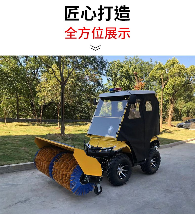 小型駕駛式除雪機,填補國內空白;掃雪滾刷,拋雪機頭,推鏟可互換;駕駛室內可加裝取暖器,掃雪不再痛苦。