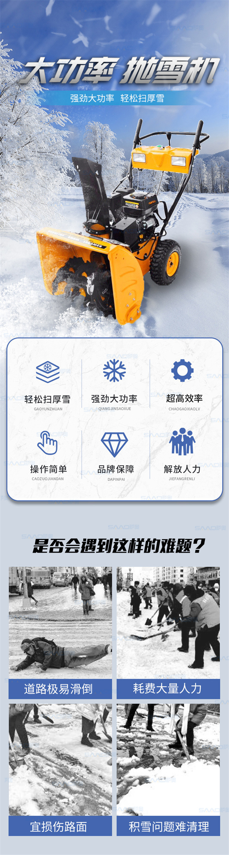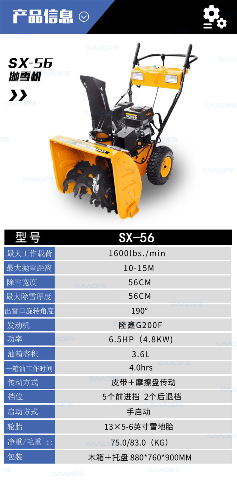 SA-56小型手扶自走清雪機掃雪機(黃色)