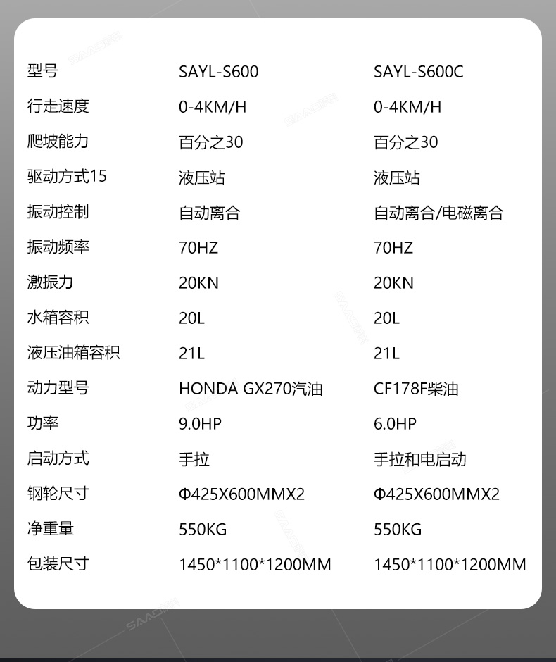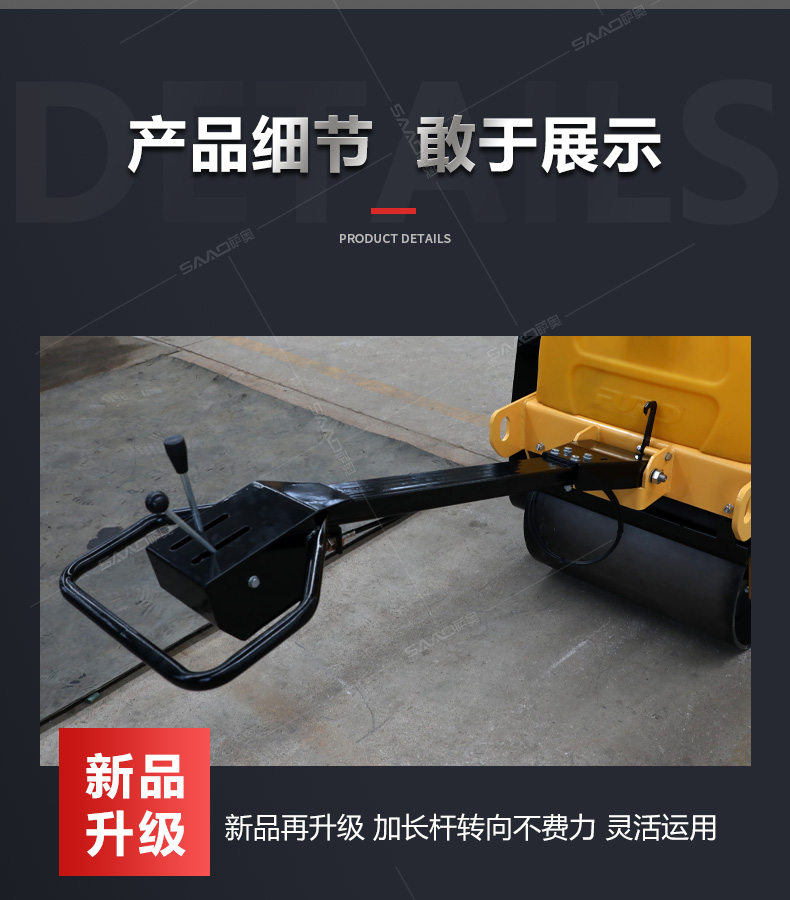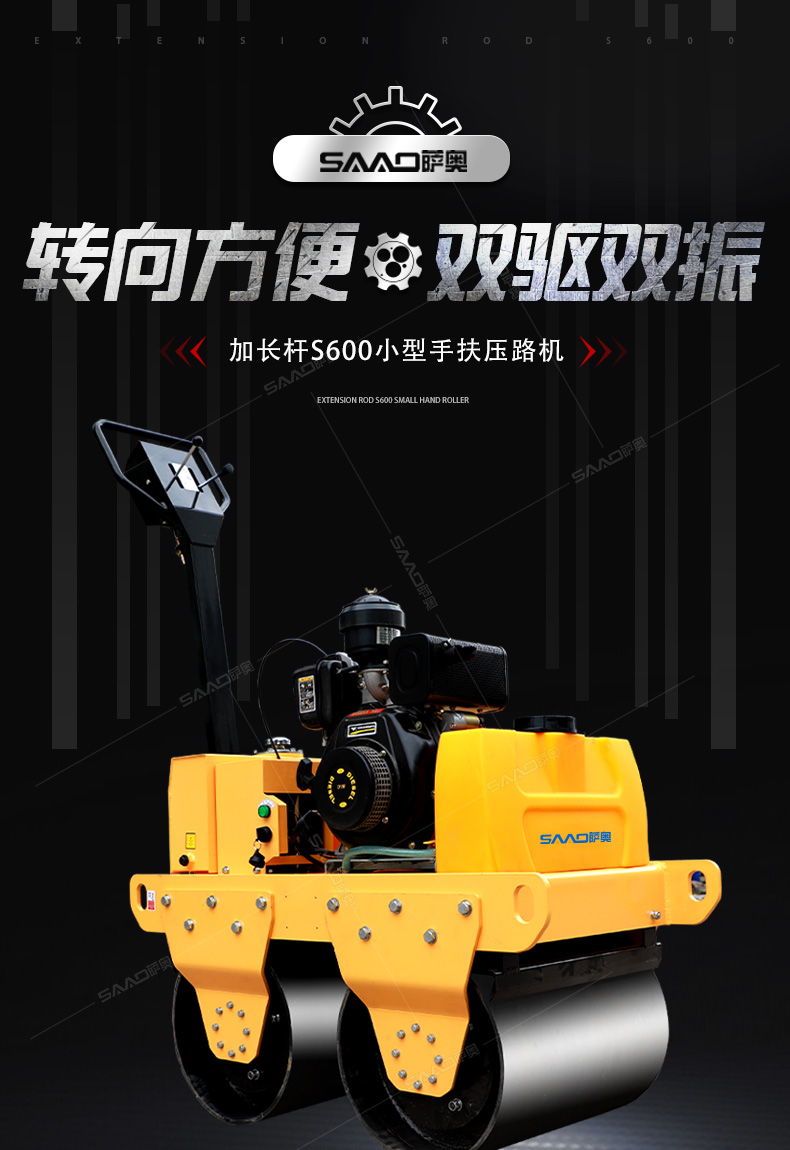 加長桿s600雙輪手扶壓路機在原有產品基礎上增加了塑料水箱和加長桿,主要用于溝渠基礎,道路,體育場地的壓實整平,也可用于壓實瀝青表面的作業。