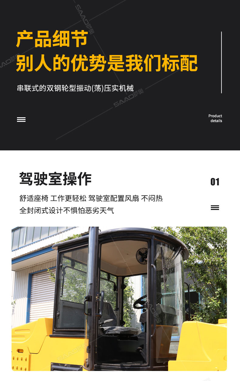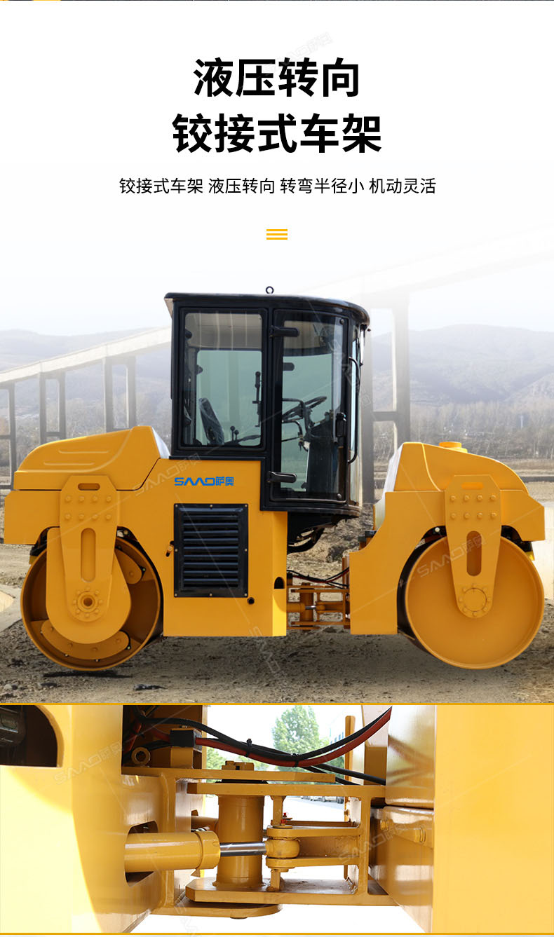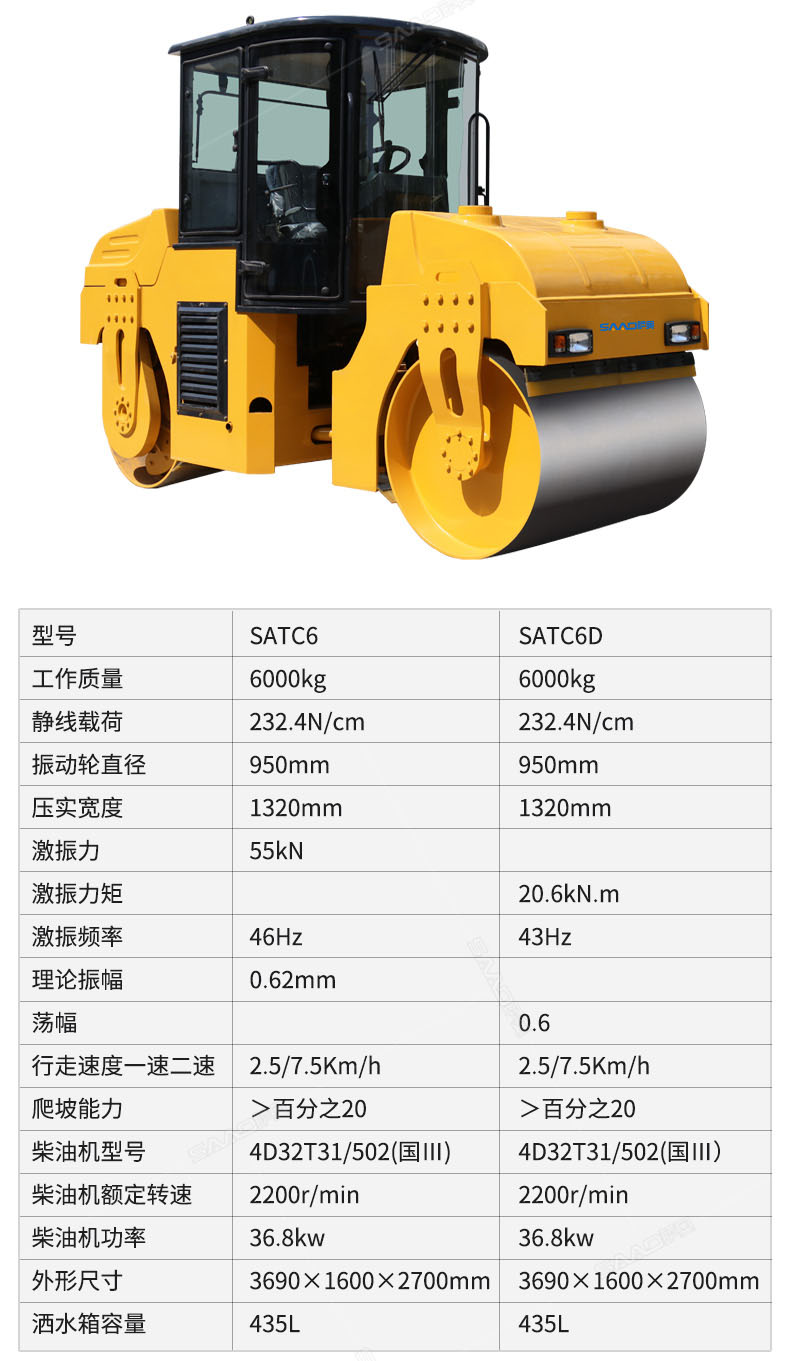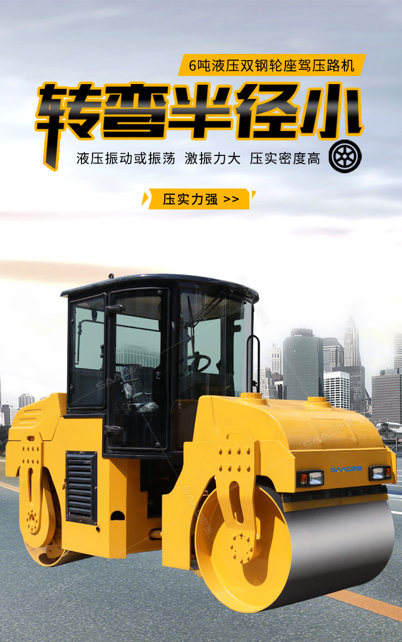 SAC6型振動壓路機(SAC6CD型振蕩壓路機)是一種串聯式的雙鋼輪型振動(蕩)壓實機械;該機主要由鉸接式車架、振動(蕩)輪、轉向輪,動力裝置、液壓振動、液壓轉向、操縱機構、電動灑水和