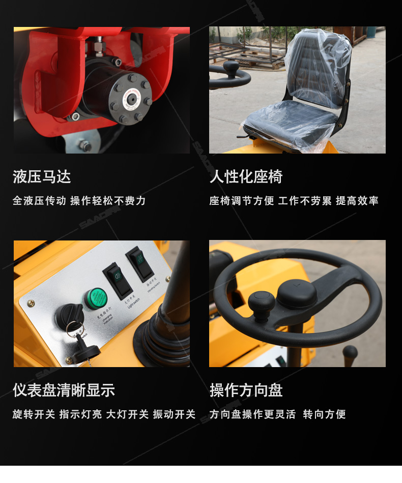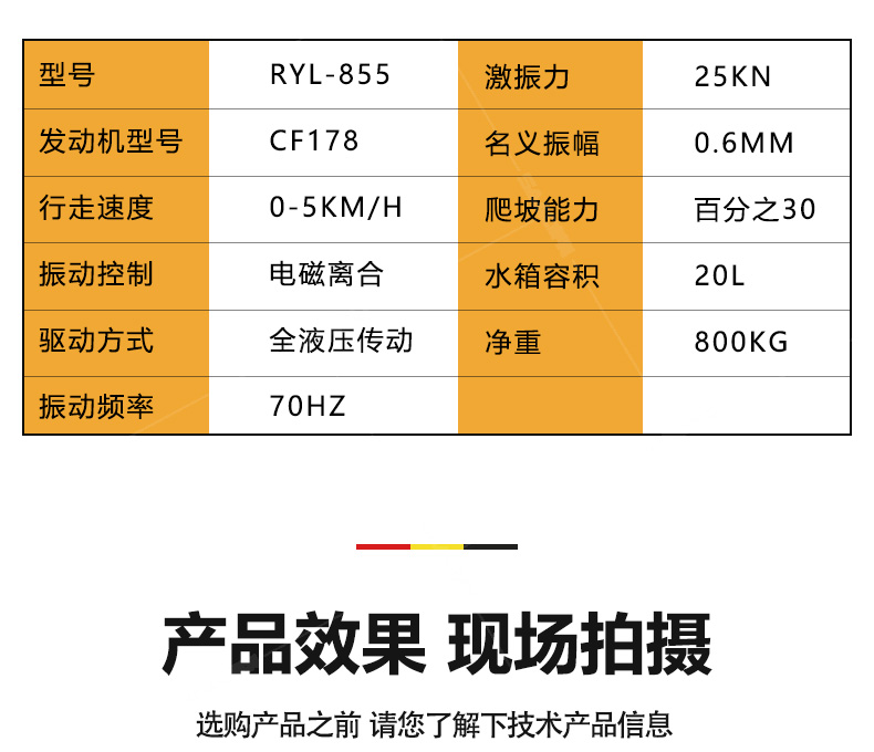 產(chǎn)品介紹: 855座駕壓路機(jī)主要用于溝渠基礎(chǔ),道路,體育場地的壓實(shí)整平,也可用于壓實(shí)瀝青表面的作業(yè)。 技術(shù)參數(shù): 發(fā)動機(jī)型號 CF178 行走速度 0-5Km/h 振動控制 電磁離合 驅(qū)動方式