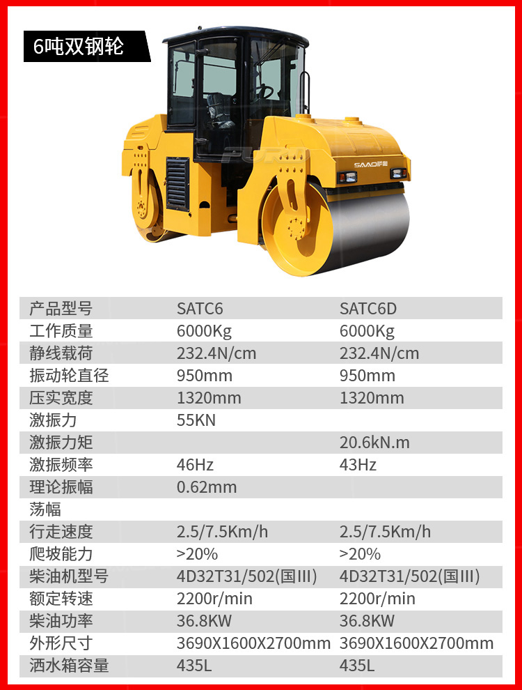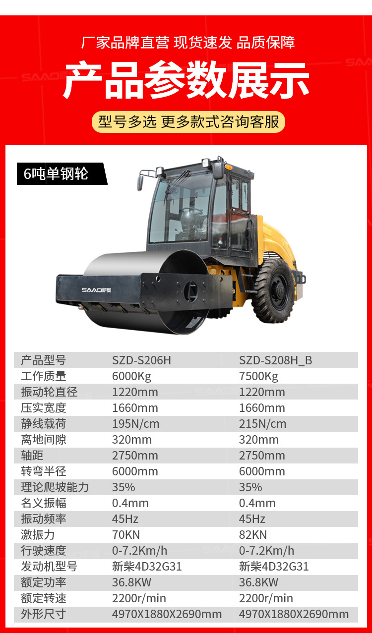 6噸液壓壓路機(jī)強(qiáng)大動力、快速壓實、路面壓實專家